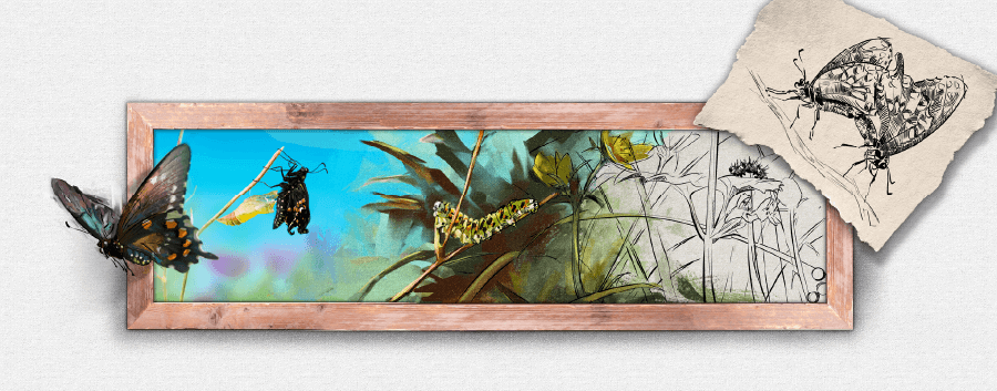 Stockmaterial, mit Skizzen und digital art kombiniert.