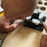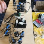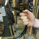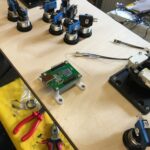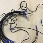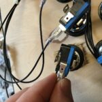 Parallel zu den Holzarbeiten haben wir die Buttons vorbereitet. Während die Kabel zum Anschluss der „Microswitches“ an der Platine mitgeliefert wurden, mussten wir das Kabel für die Stromversorgung der einzelnen Buttons selbst herstellen. Hierfür haben wir ein klassisches 5V Netzteil genommen und das Kabel einfach durchtrennt und mit Endhülsen versehen. An die beiden enthaltenen Adern musste nun jeweils eine 26-gliedrige „Daisy Chain“ angebracht werden (18 Buttons und zwei Joysticks mit je vier Richtungen).