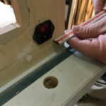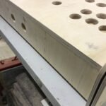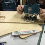 Da wir später eine Stegkante (auch T-Molding genannt) an den Kanten anbringen möchten, haben wir mit der Oberfräse 5mm dicke Schlitze komplett außen herum eingefräst.