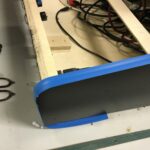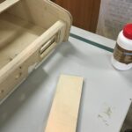 In den folgenden Tagen und Wochen haben wir dann noch einige Feinarbeiten und Korrekturen vorgenommen. Angefangen haben wir selbstverständlich mit dem Lackieren des restlichen Gehäuses. Nachdem der Lack getrocknet war, konnten wir mit einem kleinen Gummihammer und einem Föhn die Stegkanten an den Schlitzen in die Seitenwände anbringen. Der Föhn wird dringend benötigt um die Stegkante etwas aufzuweichen und an die Rundungen anpassen zu können.