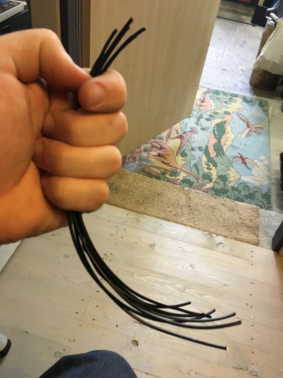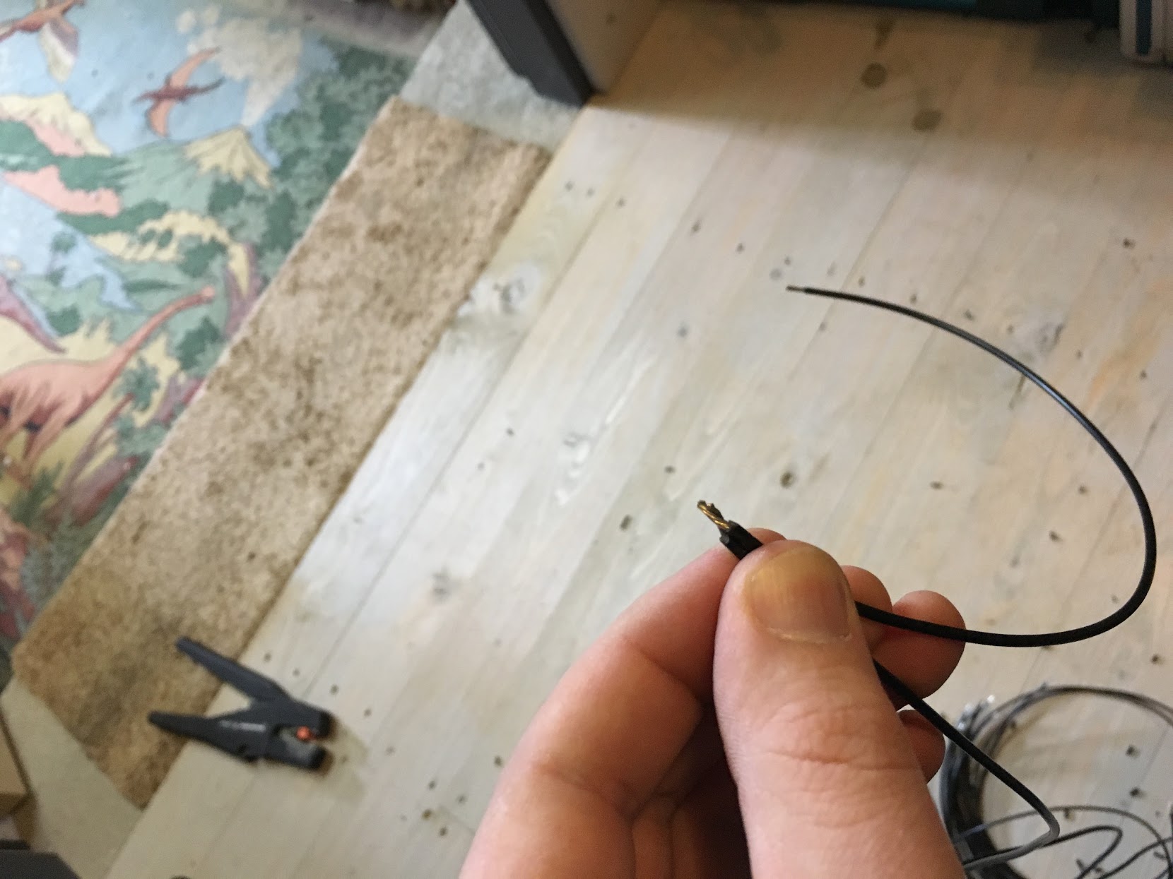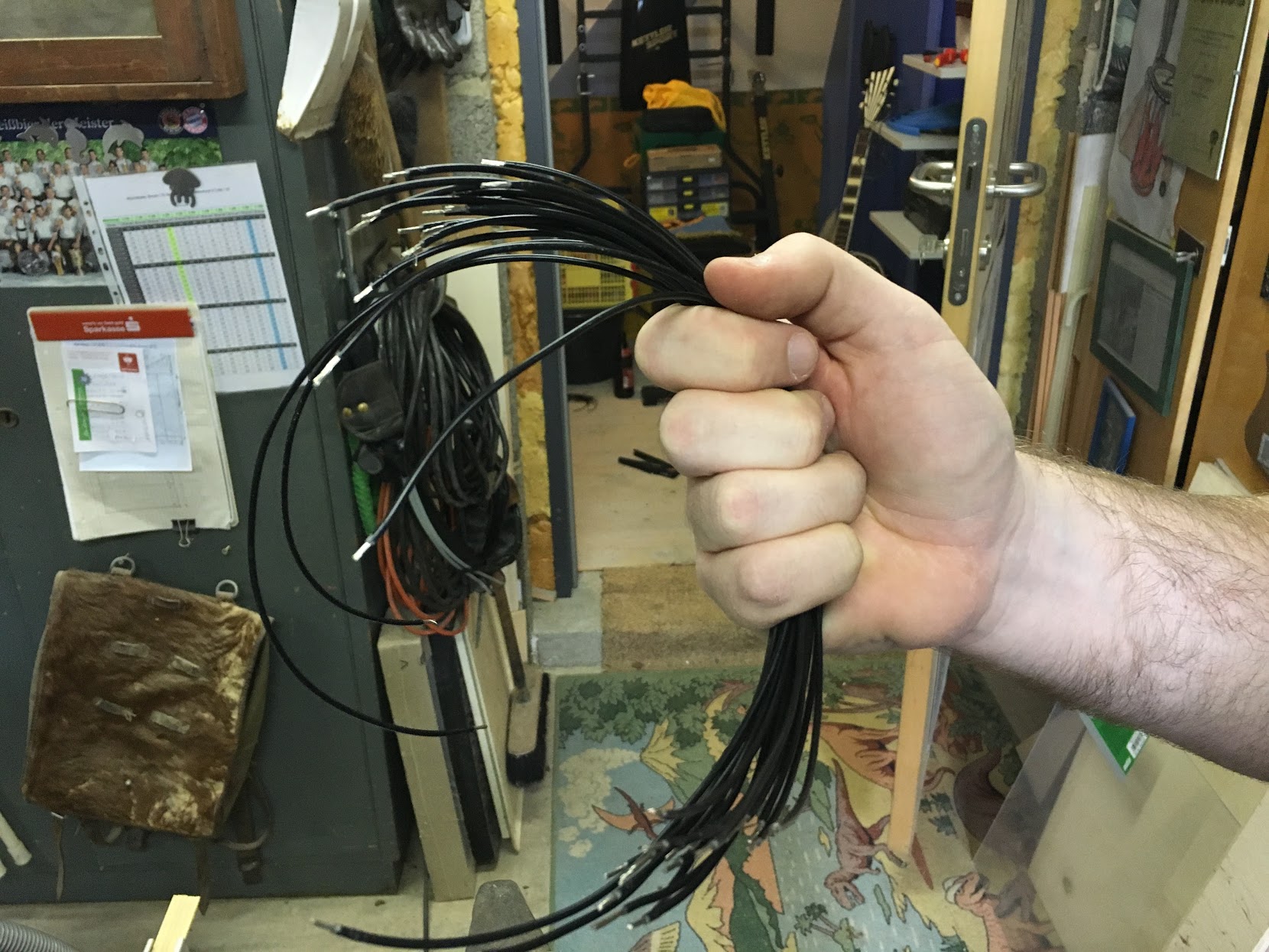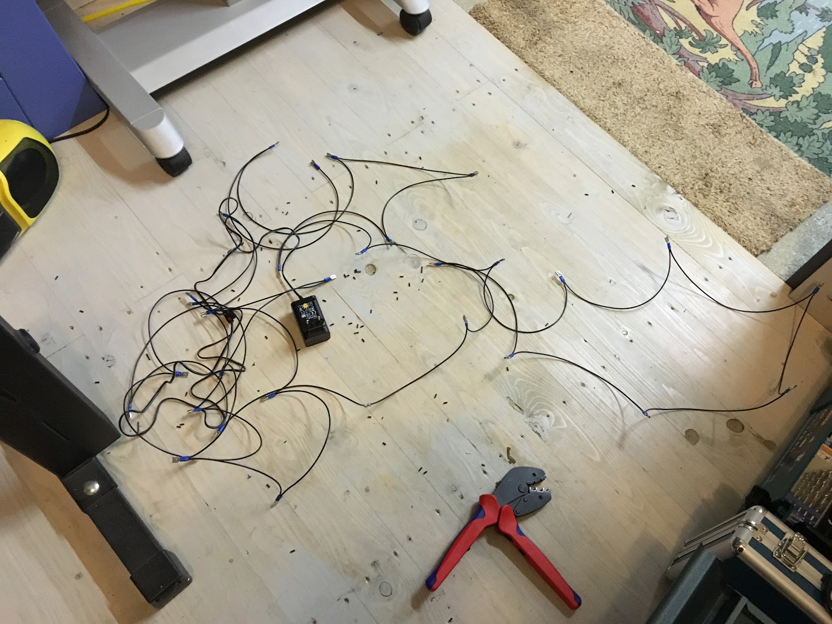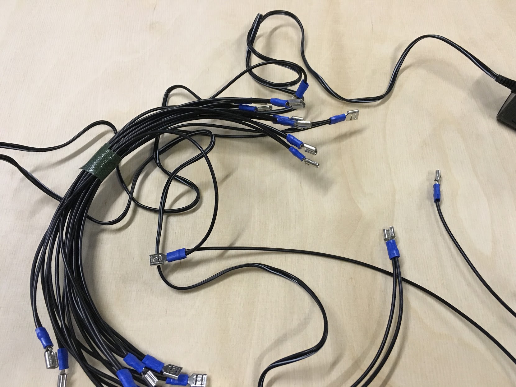 Hierfür müssen 52 etwa 12cm lange Kabel zurechtgeschnitten, ihre Enden entmantelt und dann mit kleinen Konnektoren zusammengesteckt werden – jeweils 26 für plus und minus.