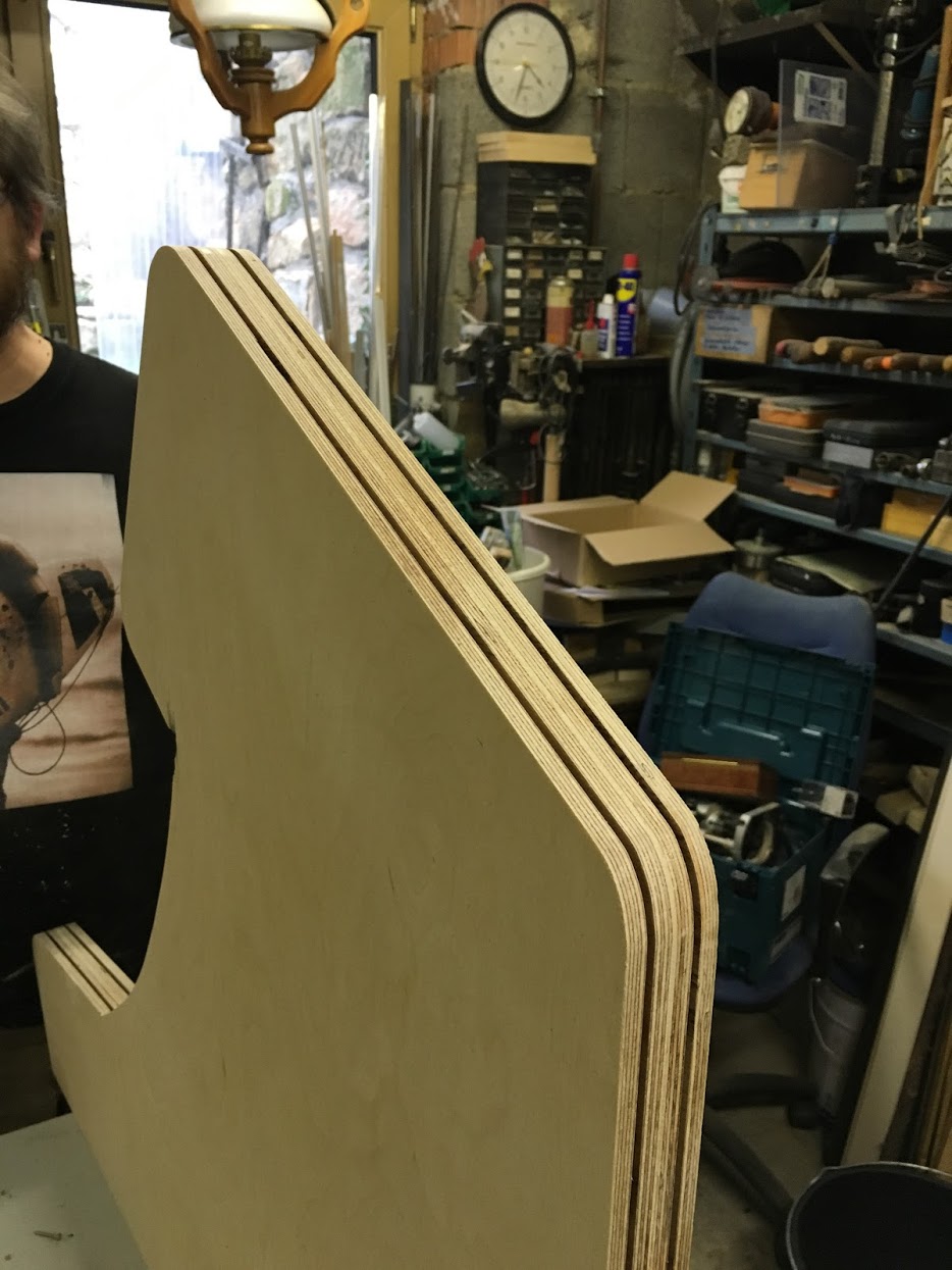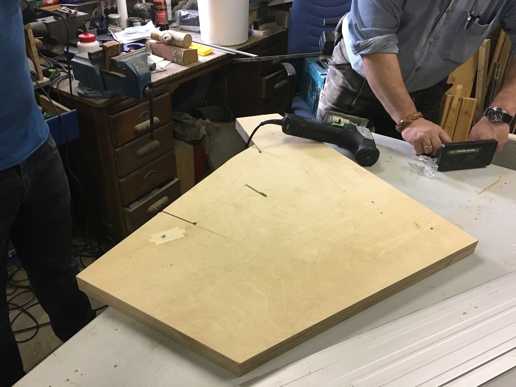 Der wichtigste Schritt ist natürlich der Bau des Gehäuses, der dem Gerät den klassischen Arcade Look verleiht. Wie in Teil 2 beschrieben, haben wir uns für MDF-Platten entschieden um eine möglichst hohe Stabilität zu erzeugen (die Platten sind 18mm dick). Zuerst wird der Grundplan auf Platten gezeichnet und die Seitenplatten gesägt. Damit beide Platten exakt deckungsgleich sein werden, haben wir die Platten zum sägen zusammengeschraubt.