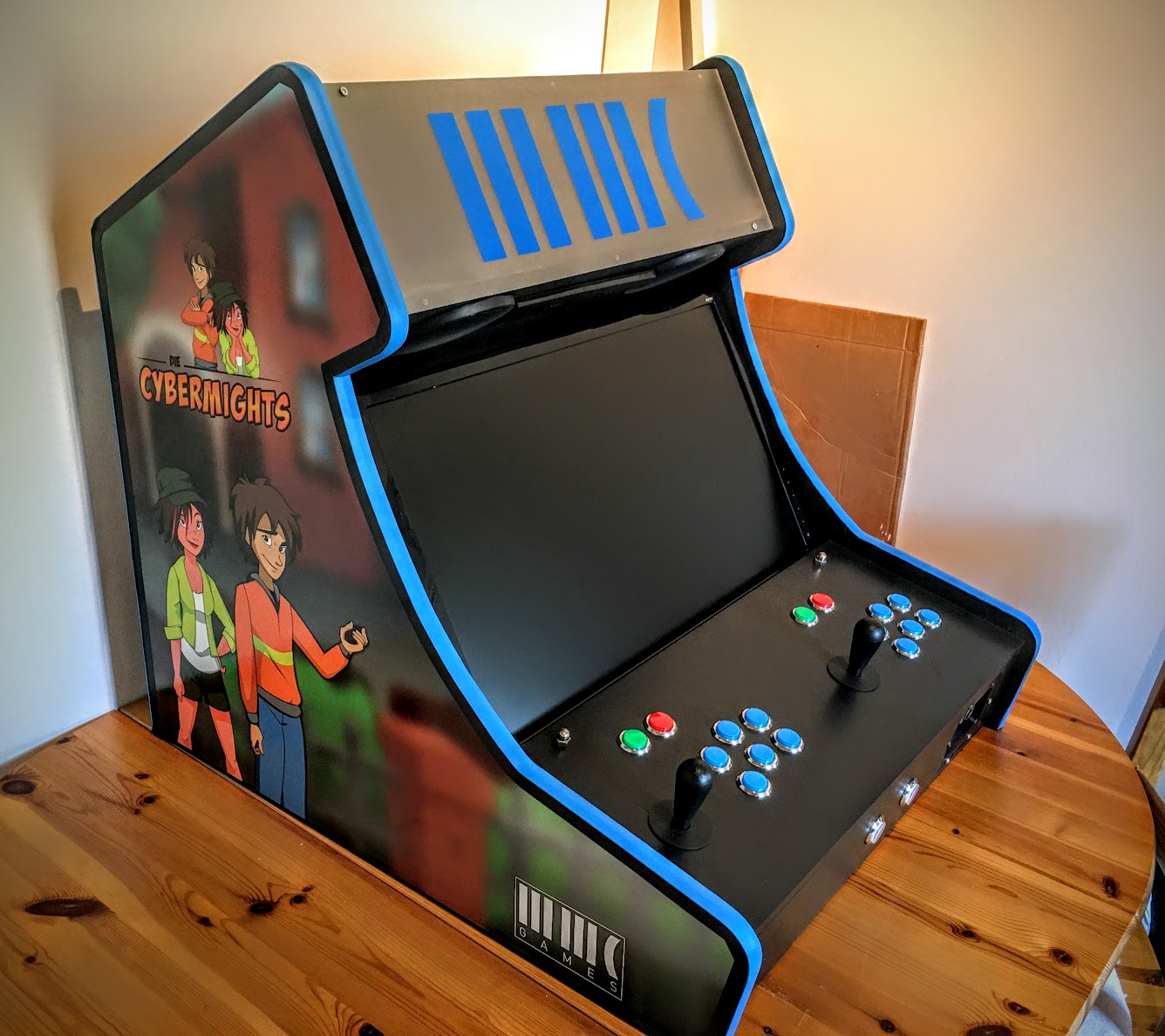 Und hier ist das fertige Gerät – wir sind sehr stolz auf unsere neue Bartop Arcade – wer mag, kann sie jederzeit in unserem Büro in Coburg ausprobieren.
